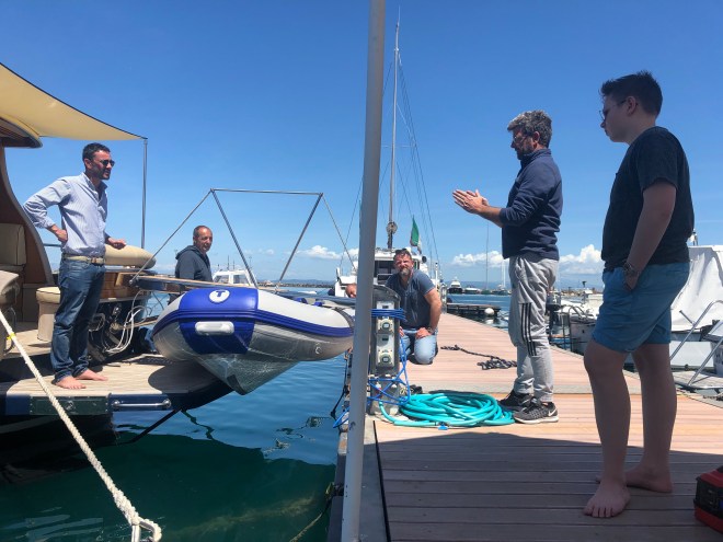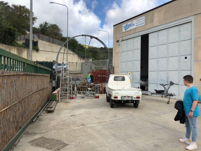 Bani ist die kleine italienische Werft, die das Boot gebaut hat. Es wird alles aus Holz gefertigt und nur der Rumpf mit GFK überzogen. Die Form ist von alten Booten abgeschaut und neu interpretiert. Paolo der Bootsbauer hat das Handwerk von der Pieke beim Gründer der Werft gelernt. Im Jahr entstehen meist nur 3-5 Boote, da alles handgefertigt wird.
