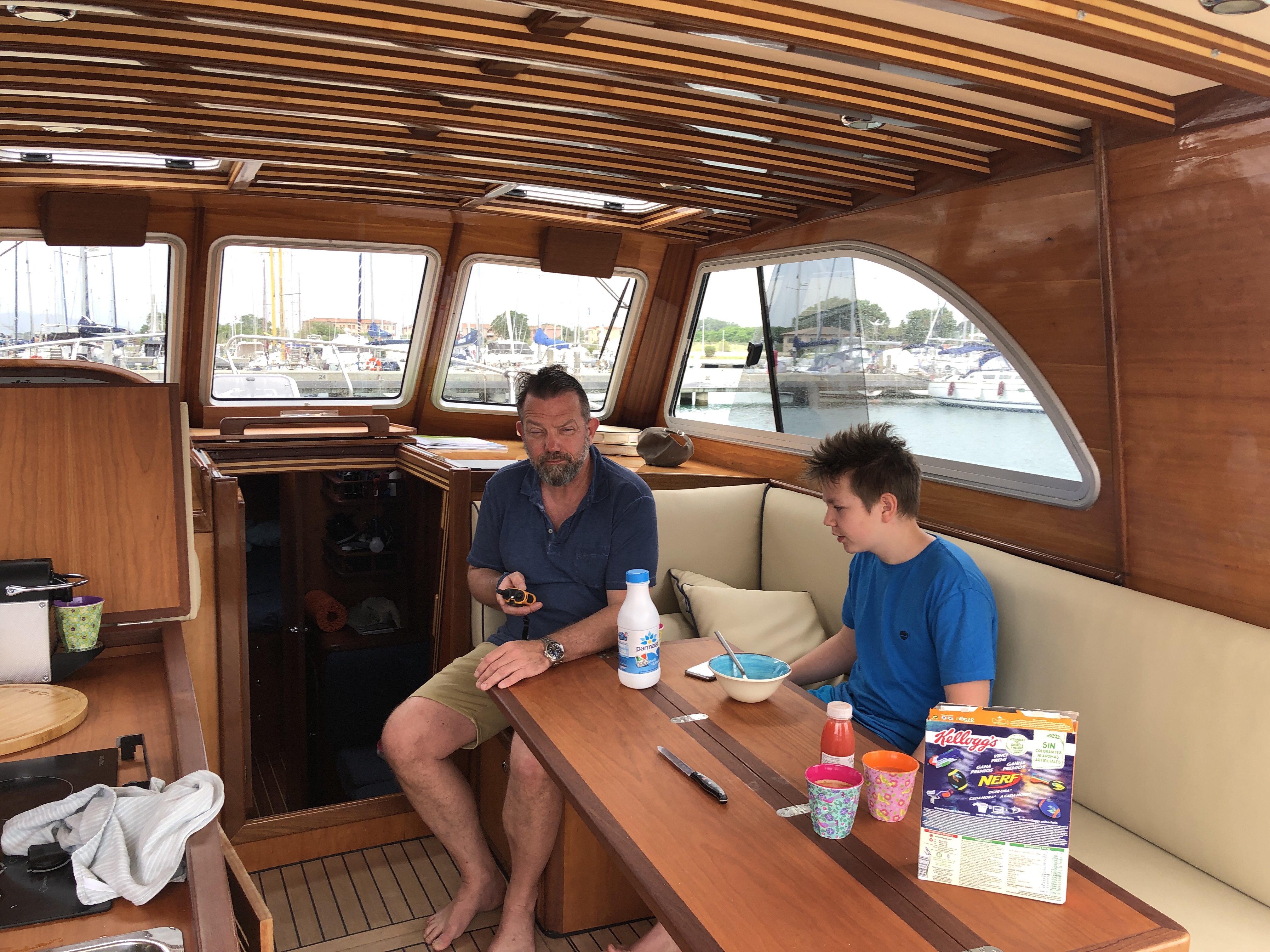 Schönes Wetter sieht anders aus und draußen wird es nicht besser, es regnet, stürmt und wird ziemlich ungemütlich, so hatten wir uns das nicht vorgestellt! Die Pfingstferien, eigentlich die beste Jahreszeit am Mittelmeer, nicht zu heiß, aber 14 Stunden Sonnenschein …