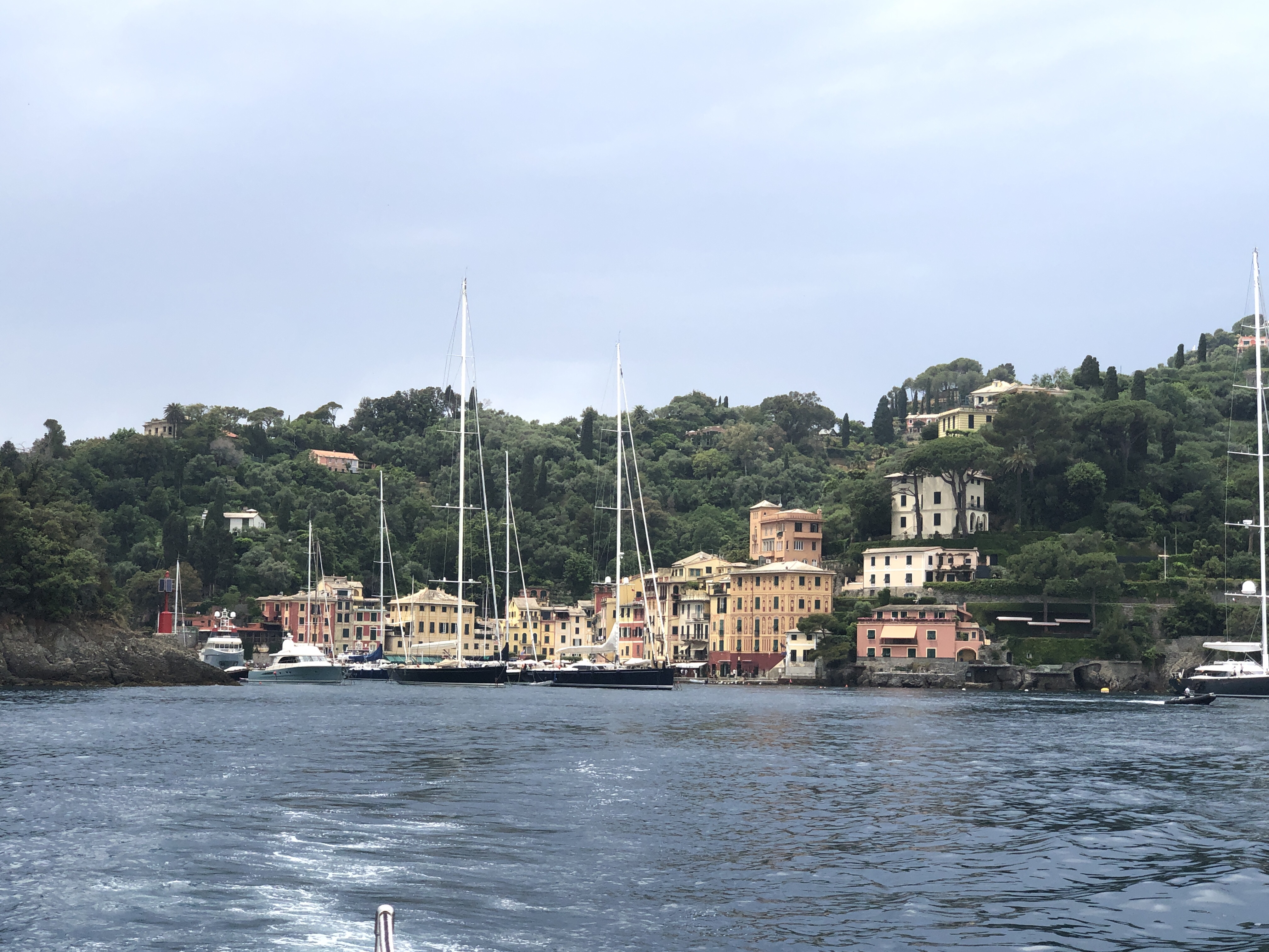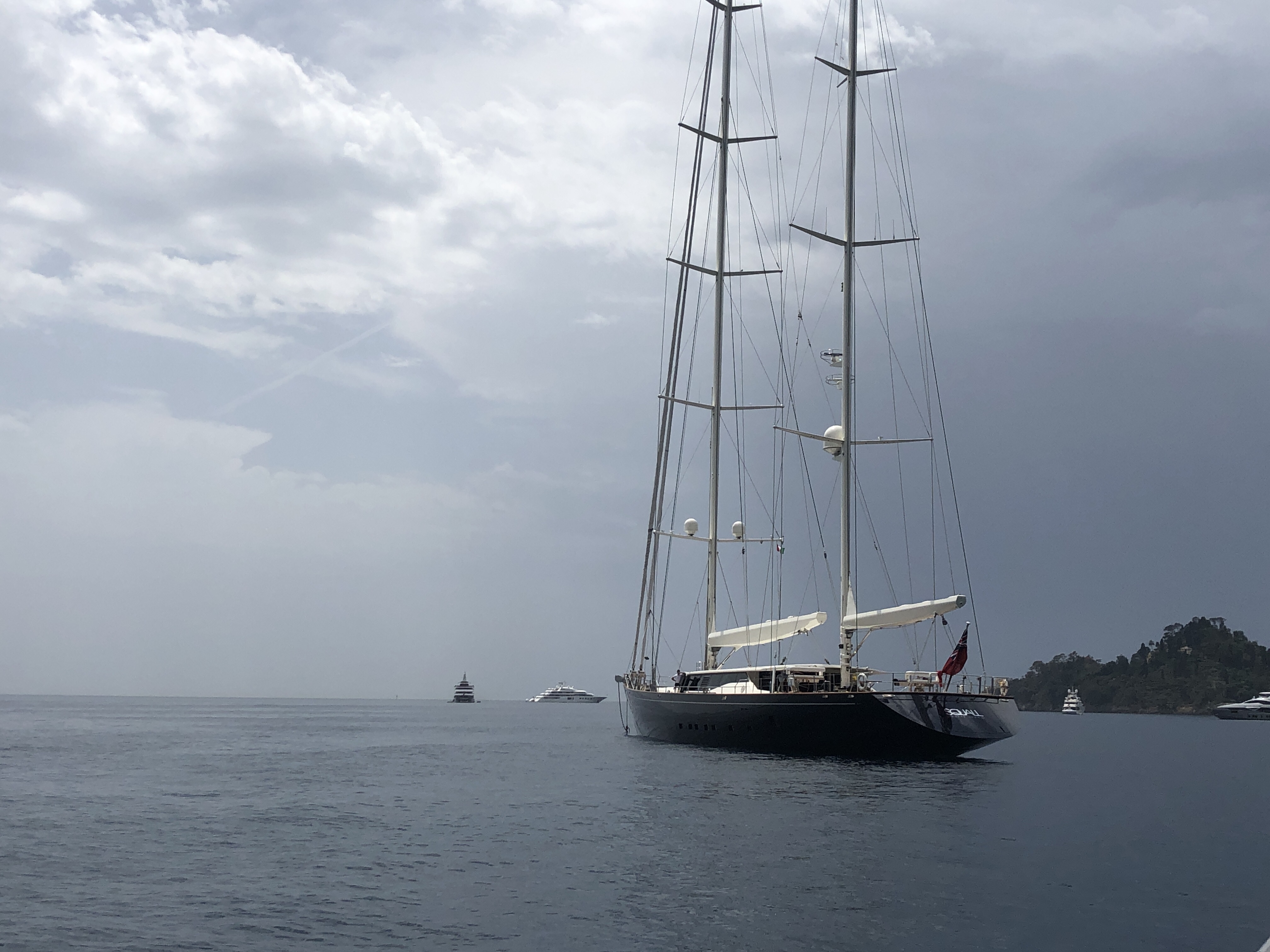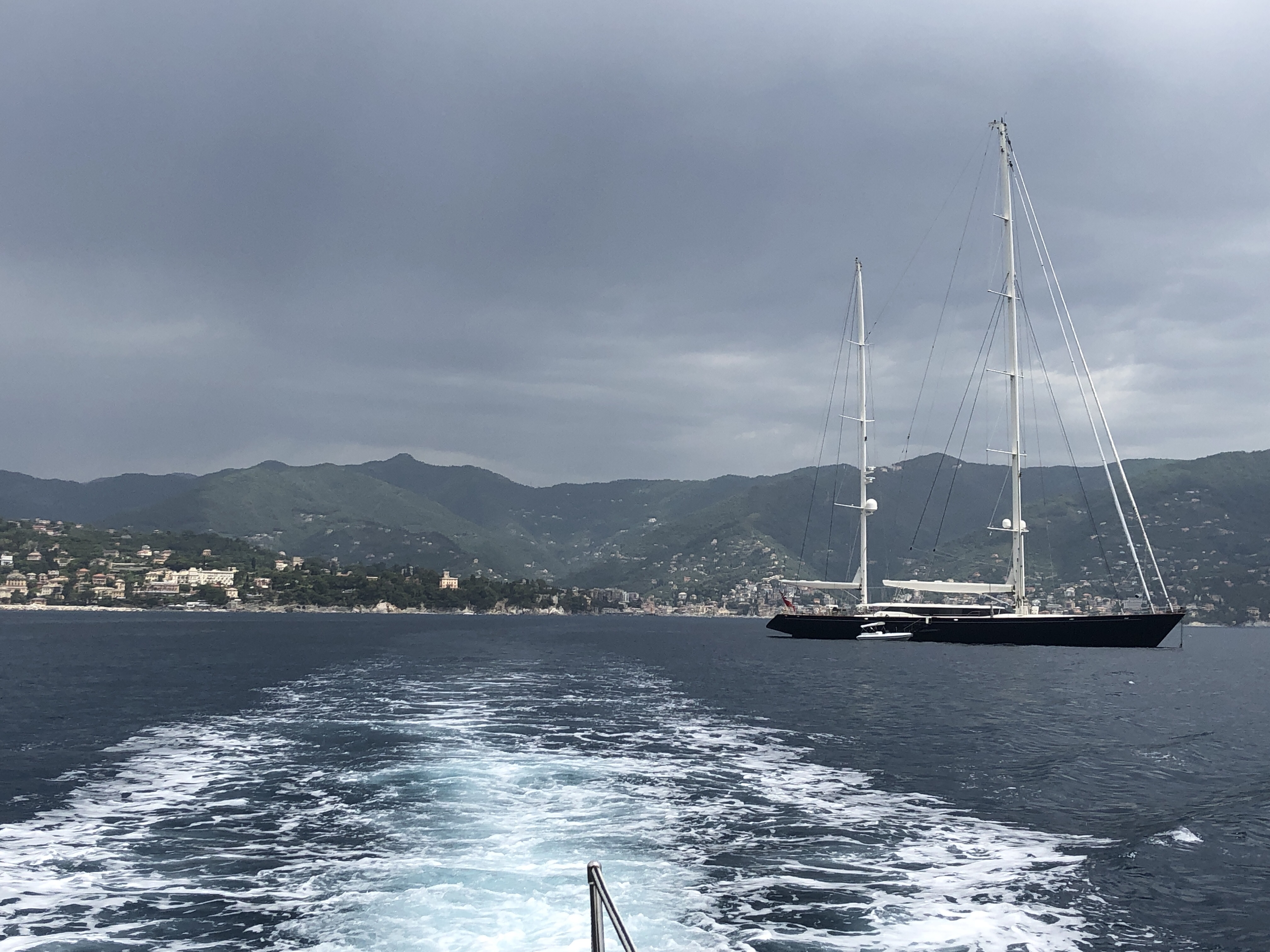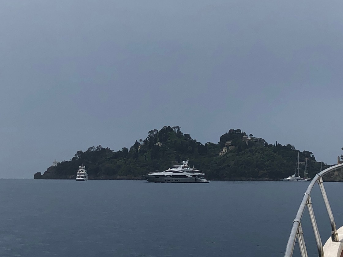 In der Bucht von Santa Margherita die Ligure und Portofino sieht es eher wieder bedrohlich aus, ein weiterer Unwetterausläufer streift uns am Rande, dafür ist die Küste hier malerisch und die Boote ganz schön groooß.