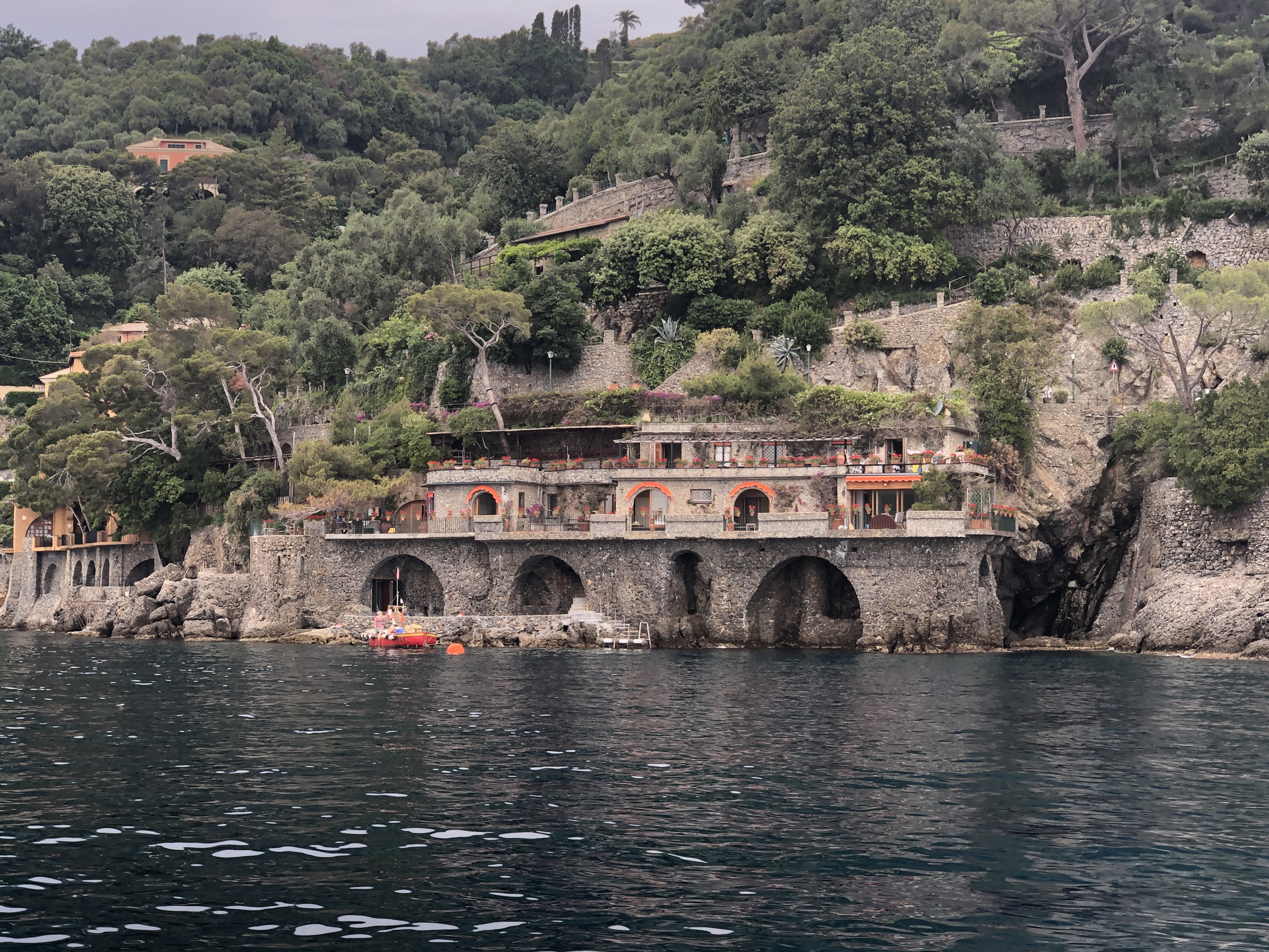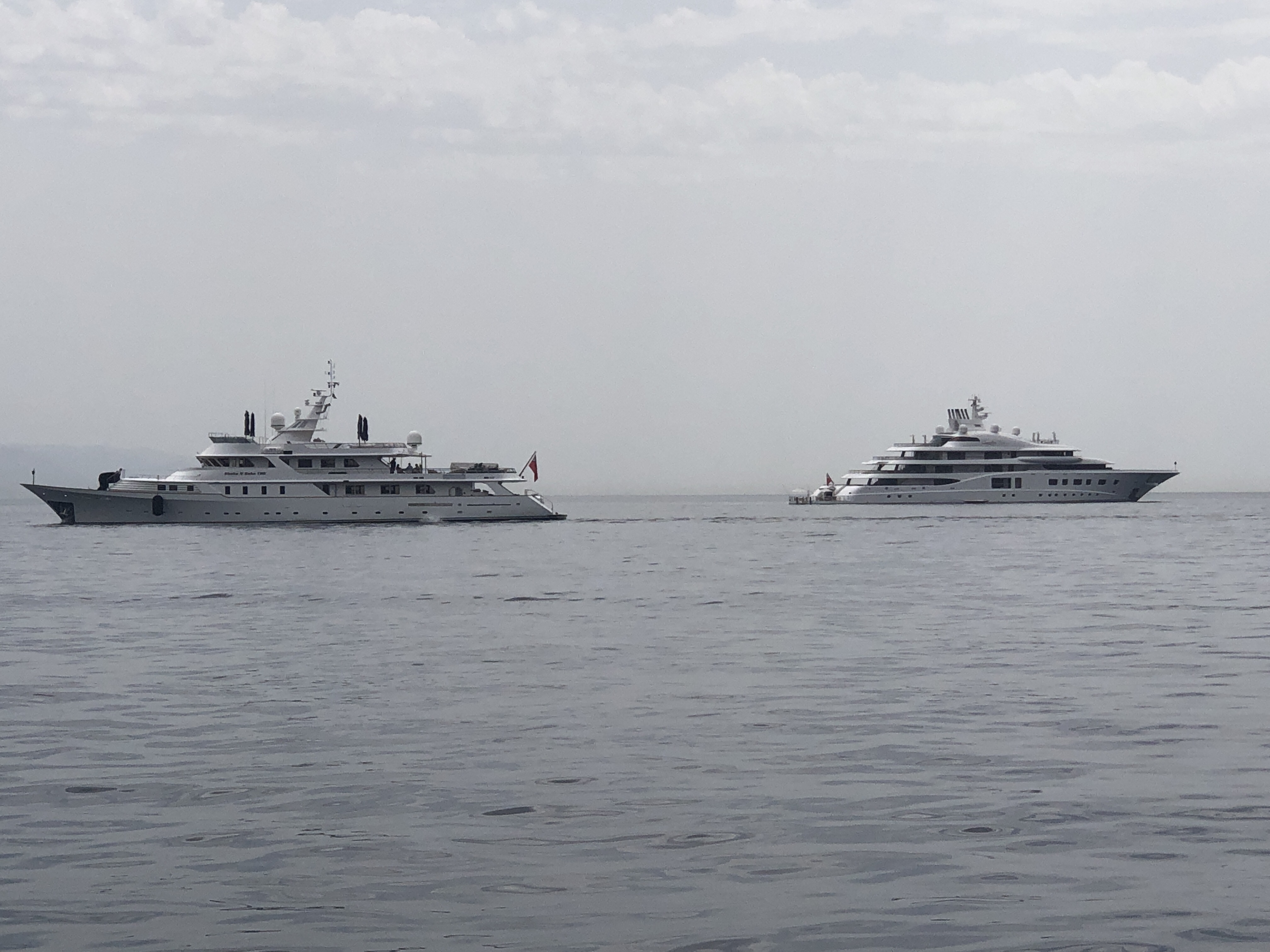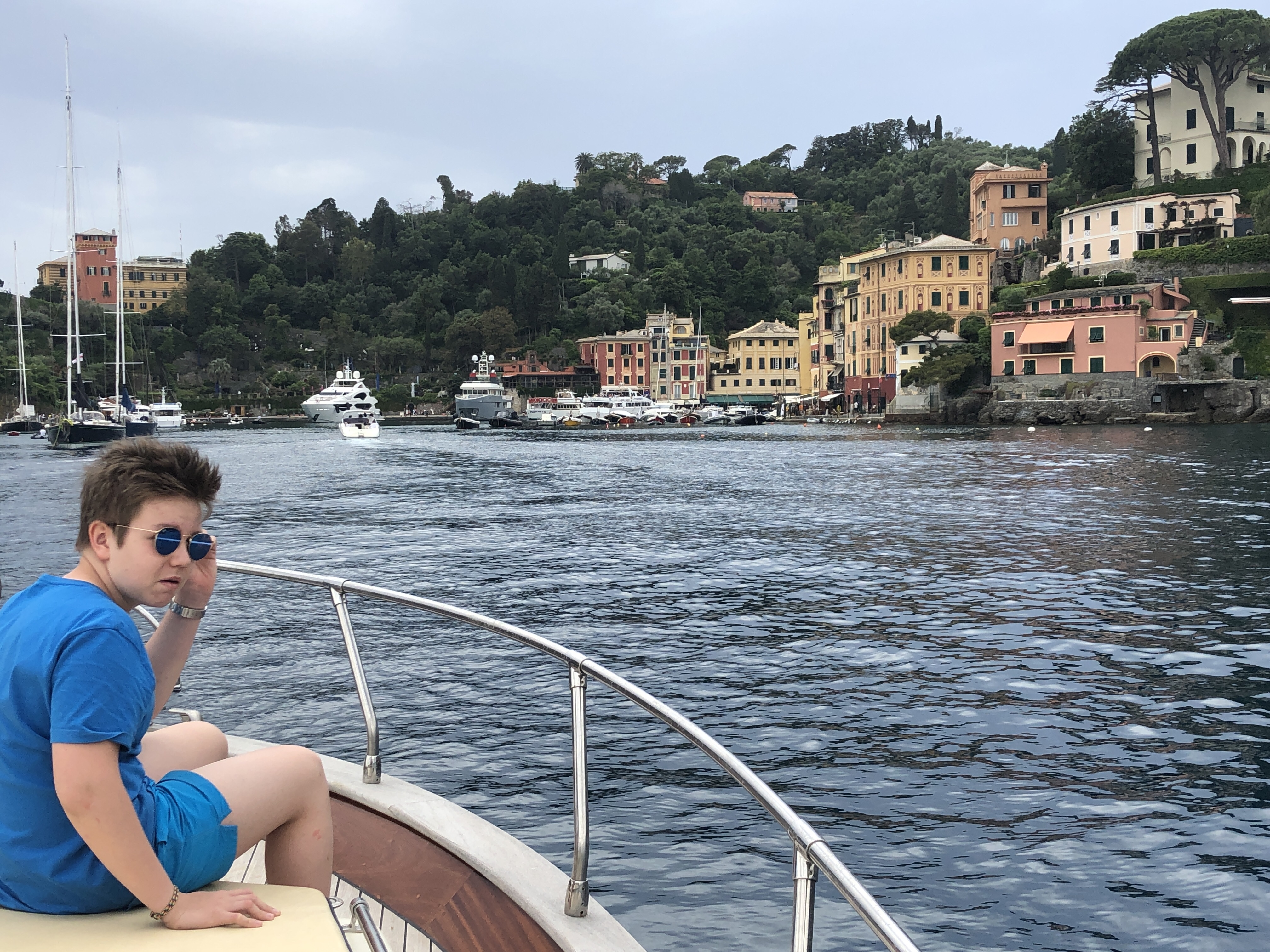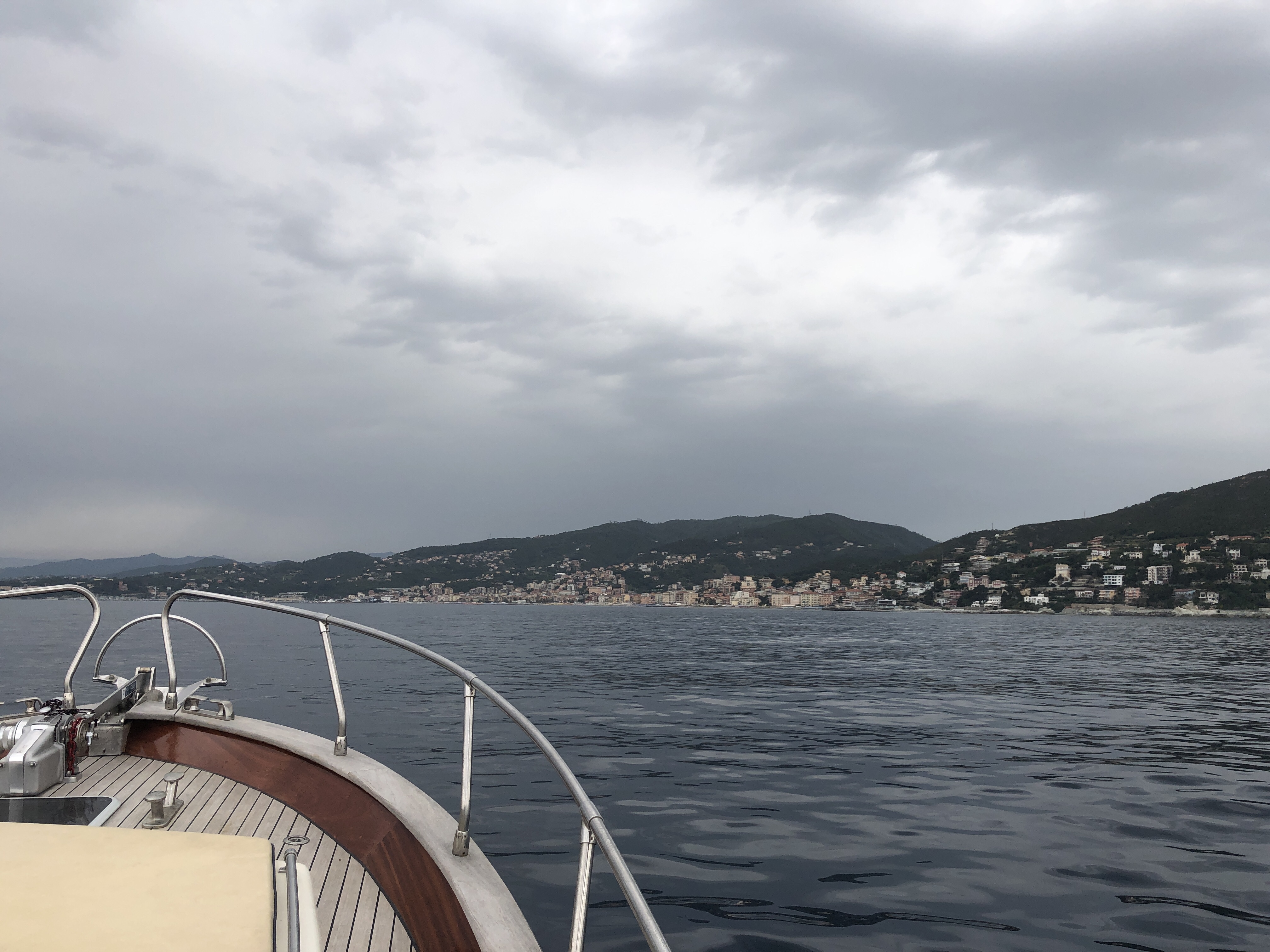 In der Bucht von Santa Margherita die Ligure und Portofino sieht es eher wieder bedrohlich aus, ein weiterer Unwetterausläufer streift uns am Rande, dafür ist die Küste hier malerisch und die Boote ganz schön groooß.