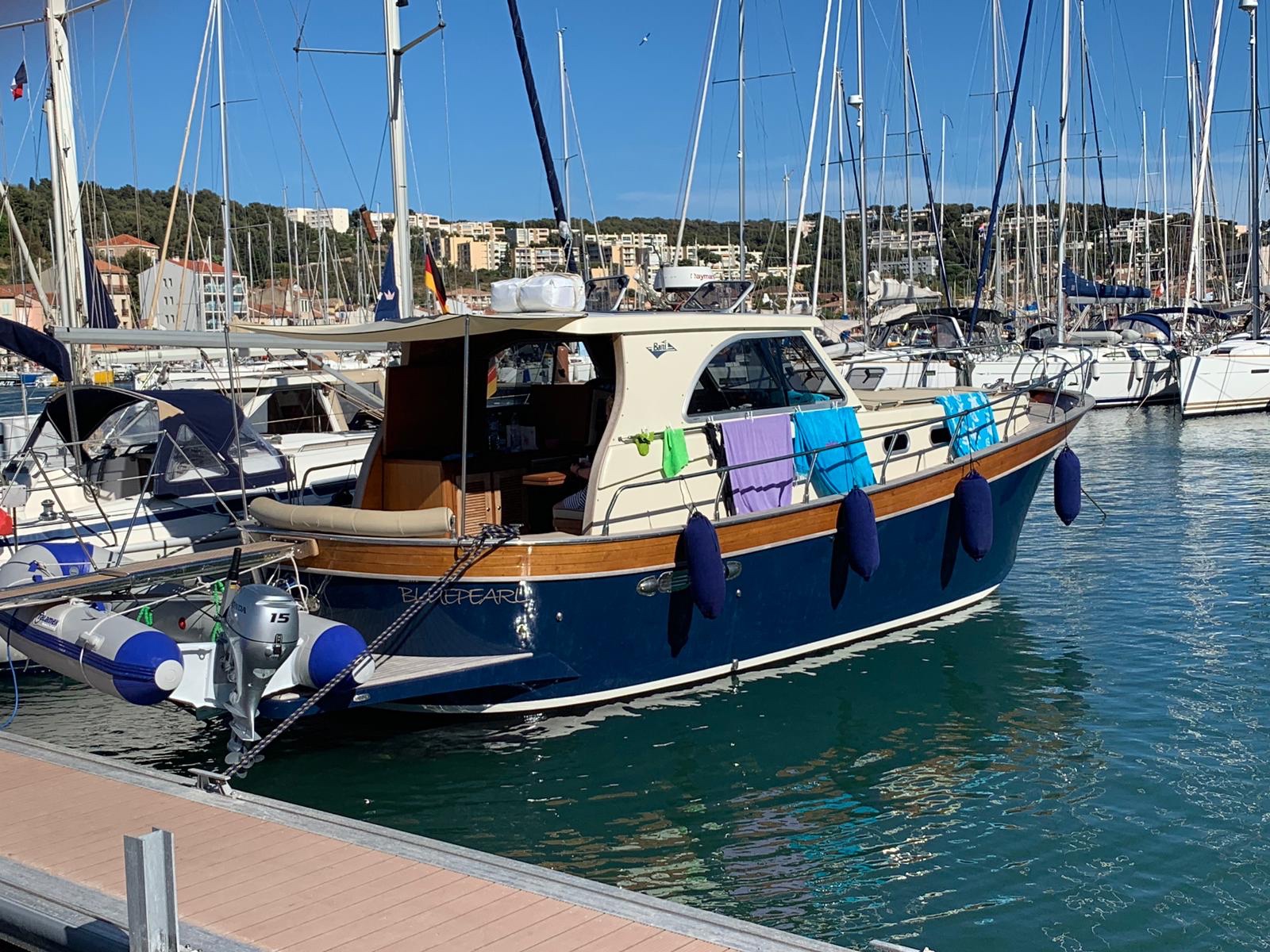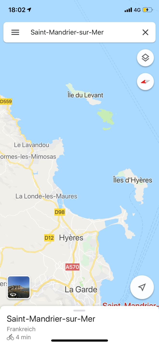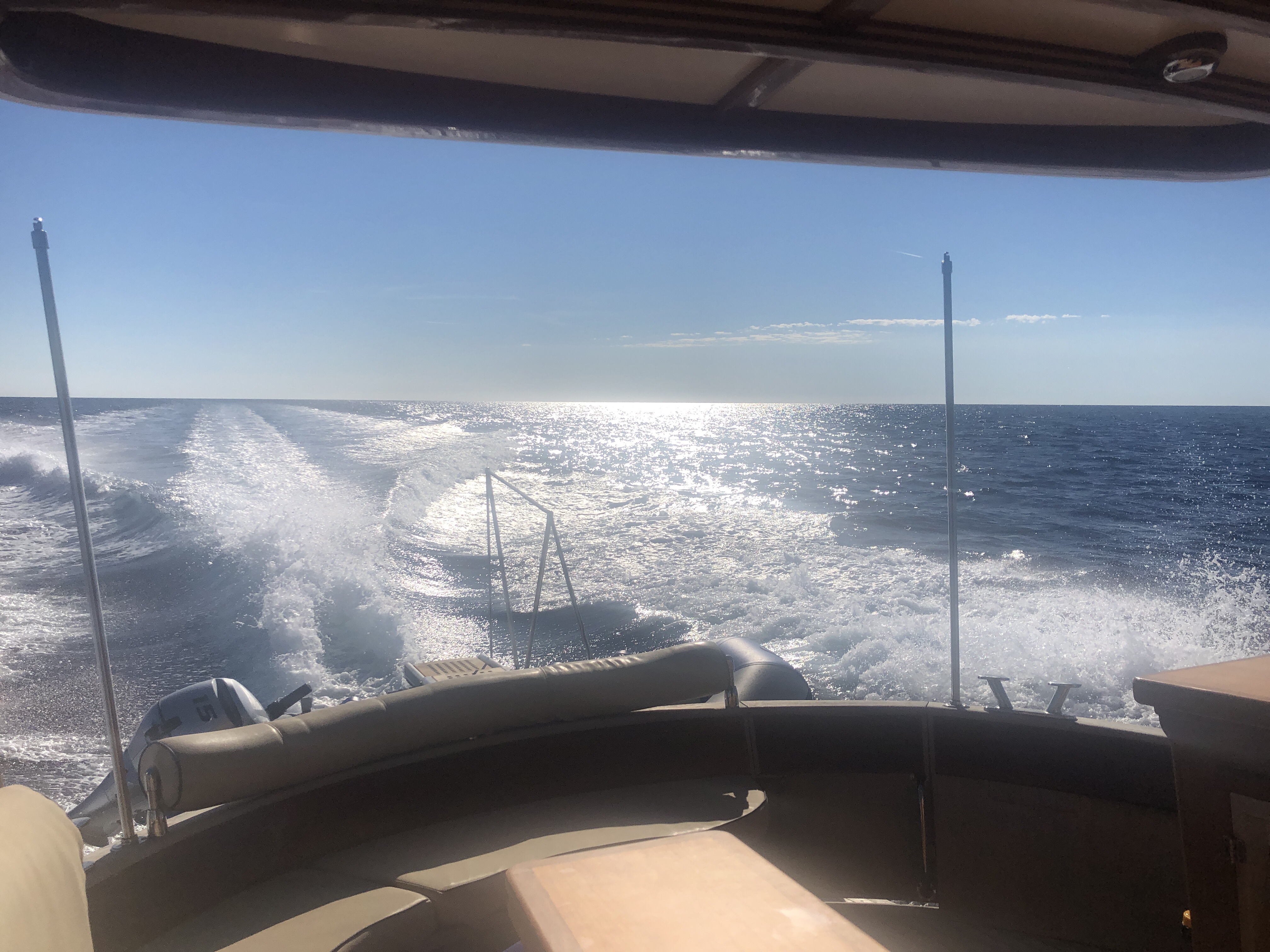 Wir haben die Wellen von allen Seiten und der Käptn sieht es ein, wir müssen Fahrt raus nehmen. Ich übernehme das Steuer und wir fahren mit Verdrängerfahrt zwischen Le Lavandou, Ile de Levantine und Ile d’Hyères mit etwas gemächlicheren 11 Knoten entlang, das zieht sich scheinbar endlos. Das Boot ist wirklich beeindruckend, wie es mit der auch heute wieder aufgewühlten See fertig wird, am Steuer ist das ganz anders wahrnehmbar. Marlon beginnt sich schon zu langweilen, aber immerhin scheint die Sonne und ein Nickerchen ist drin. Dabei knallen wir immer wieder bei größeren Wellen hart aufs Meer und der Schlaf bleibt nur von kurzer Dauer.