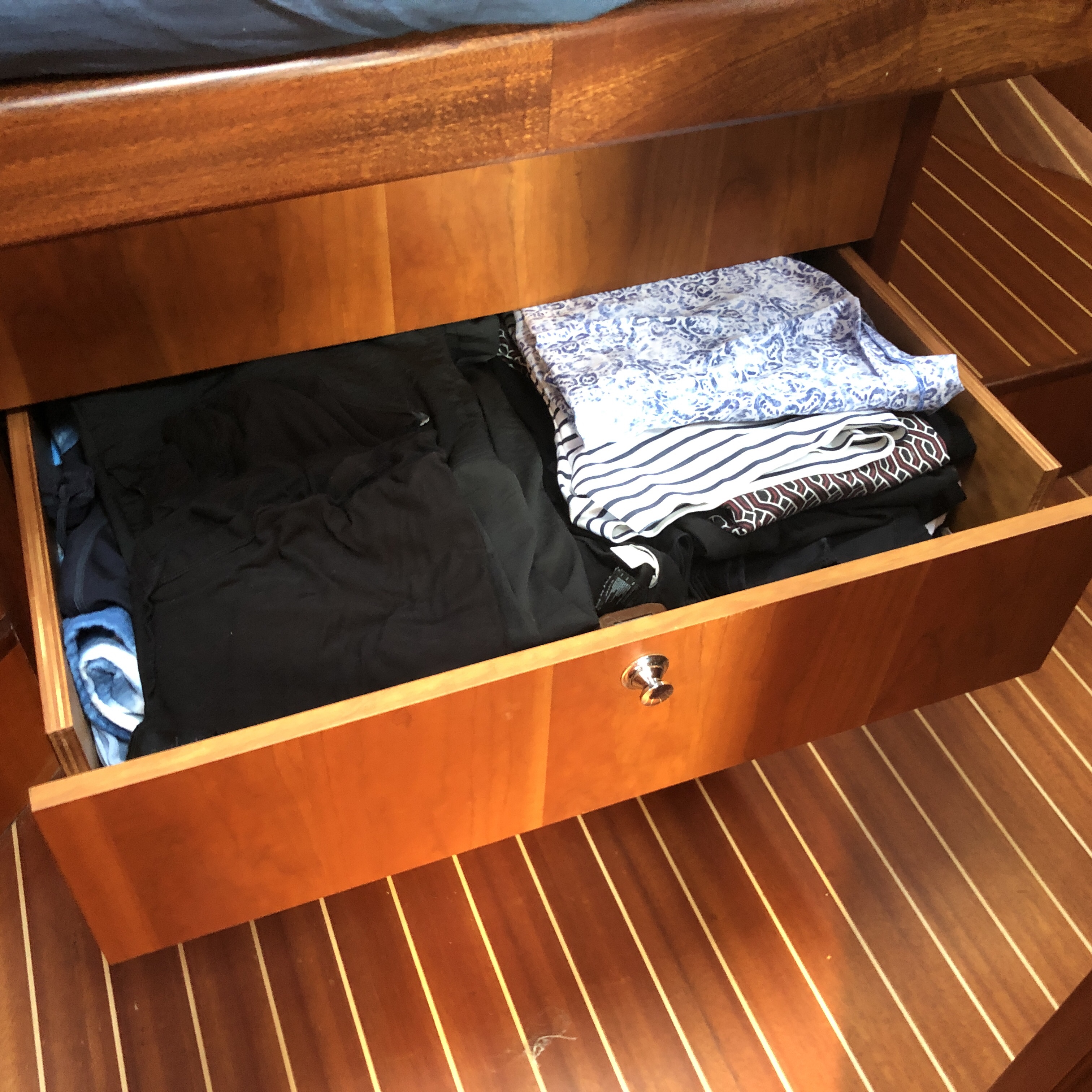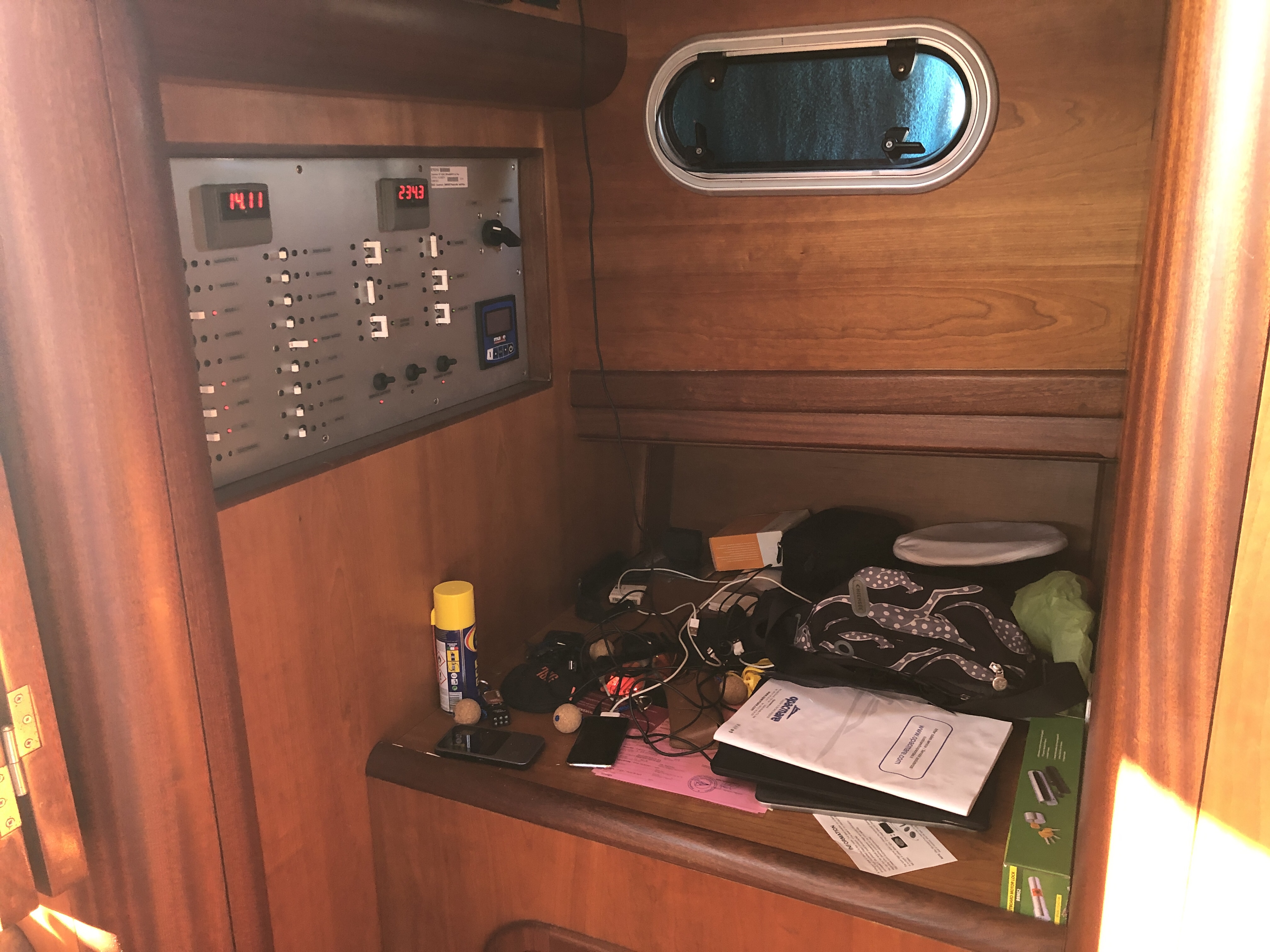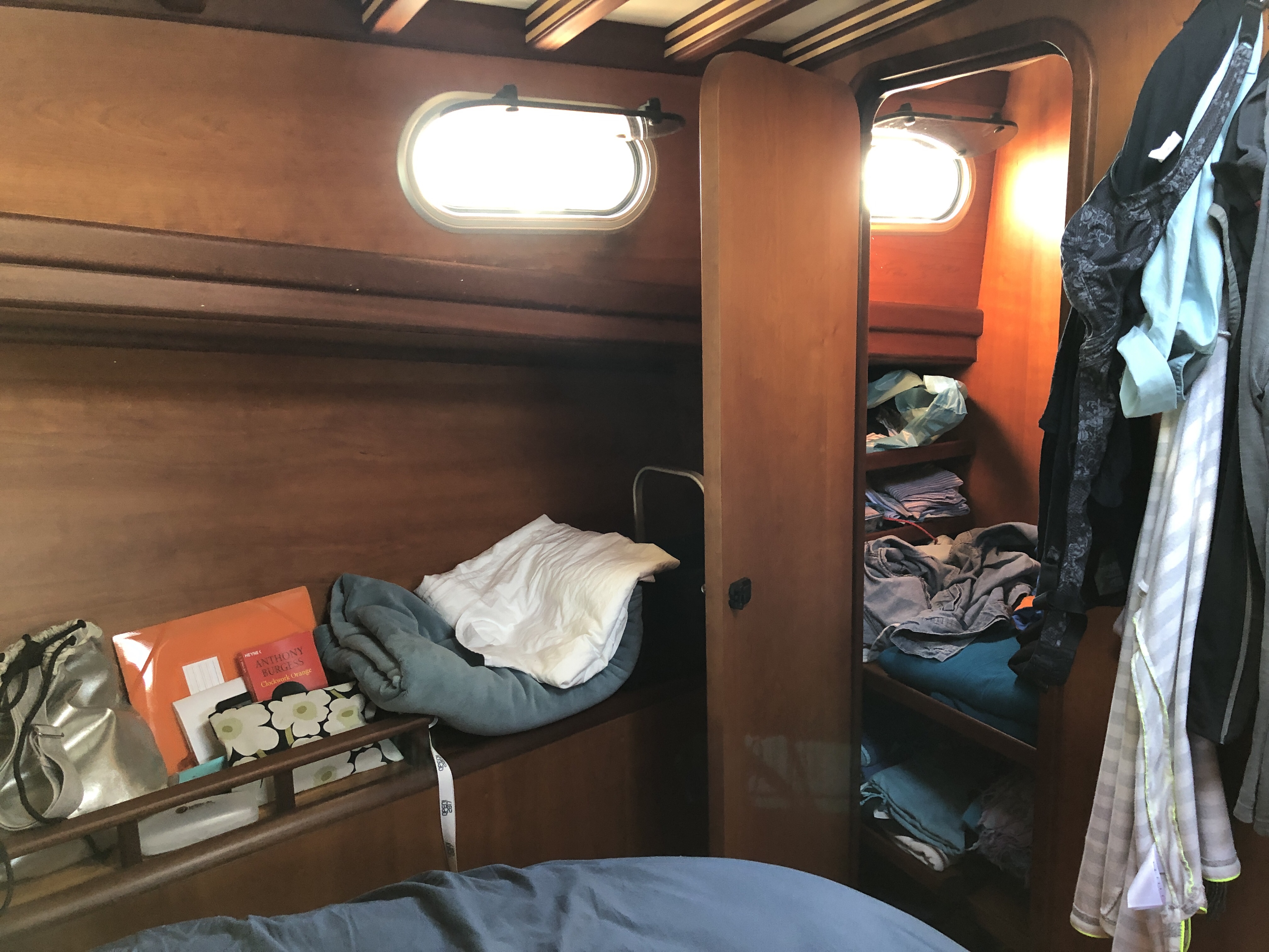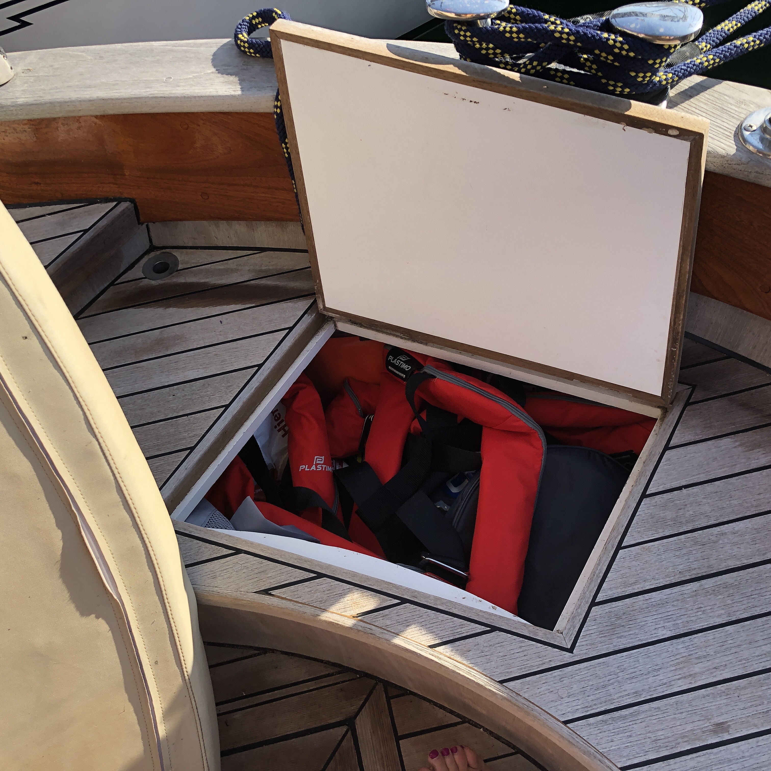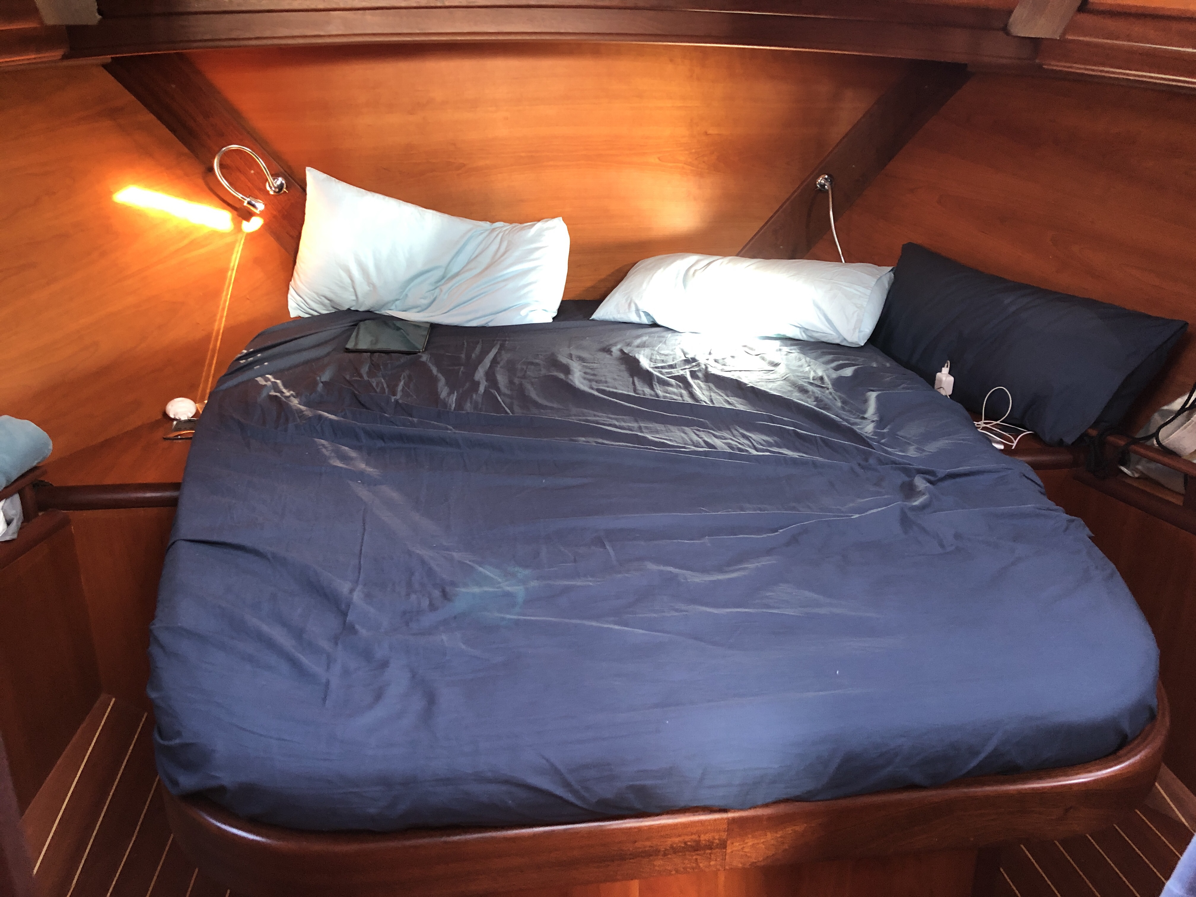 Und, jetzt ein bisschen Homestory, wie sieht’s an Bord aus? Edel verarbeitetes Holz, überall Stehhöhe, viel Stauraum, aber seht selbst …