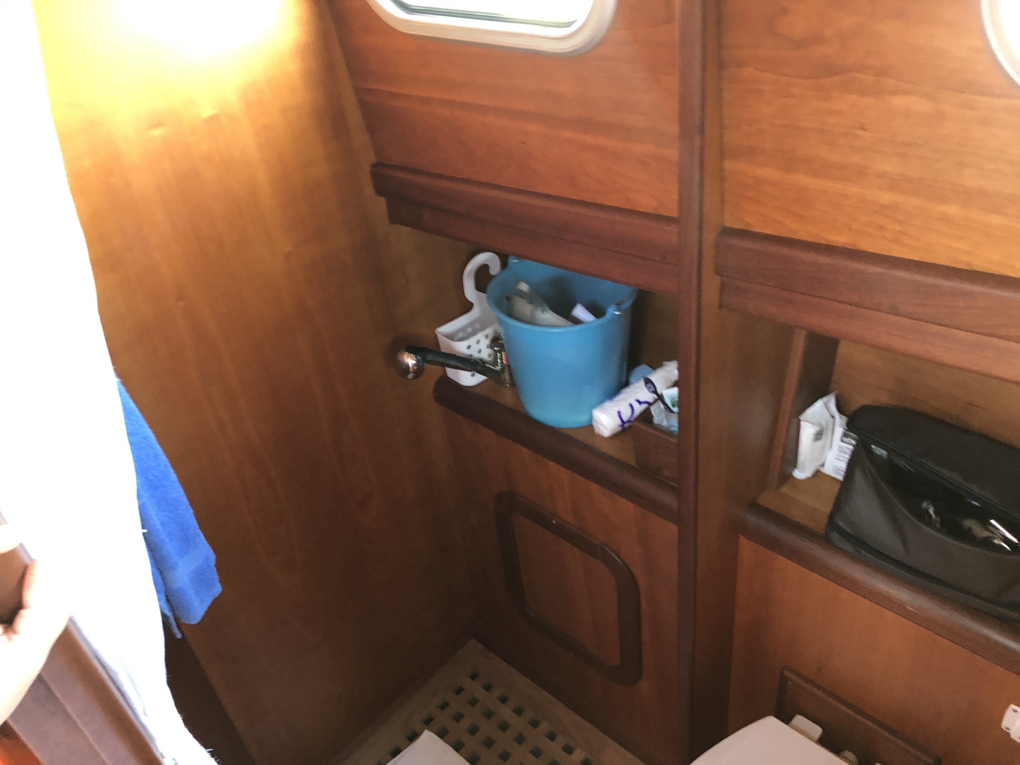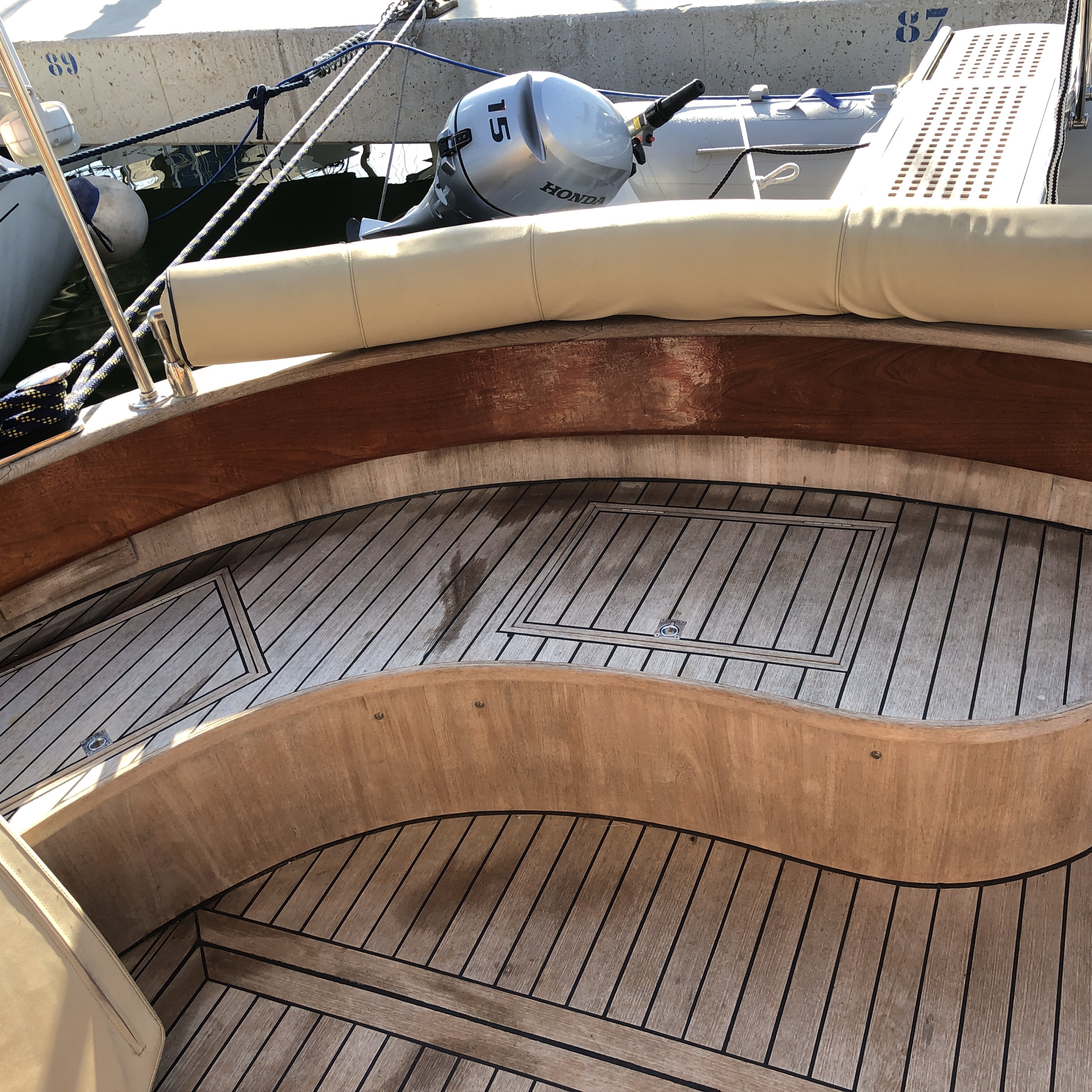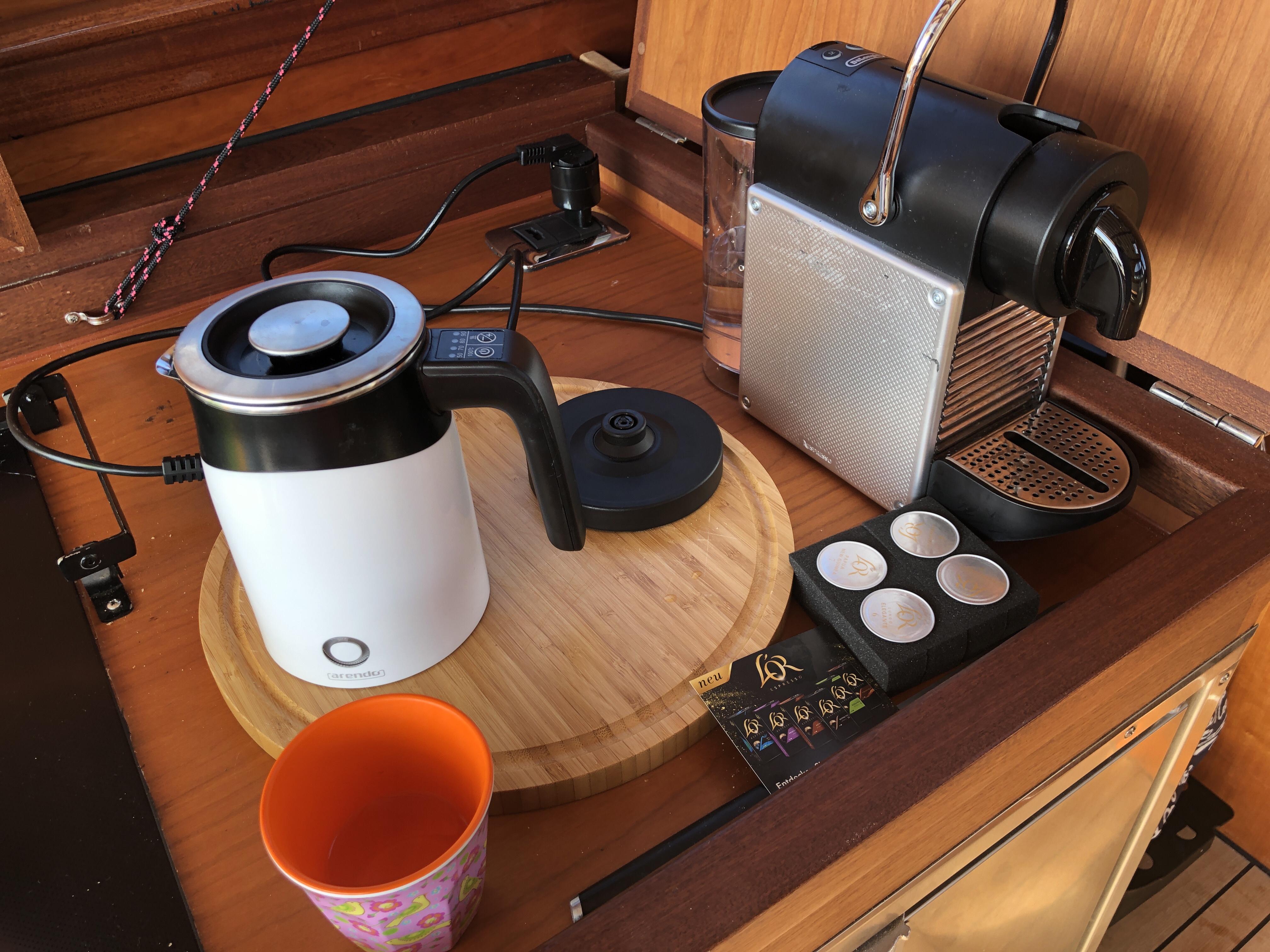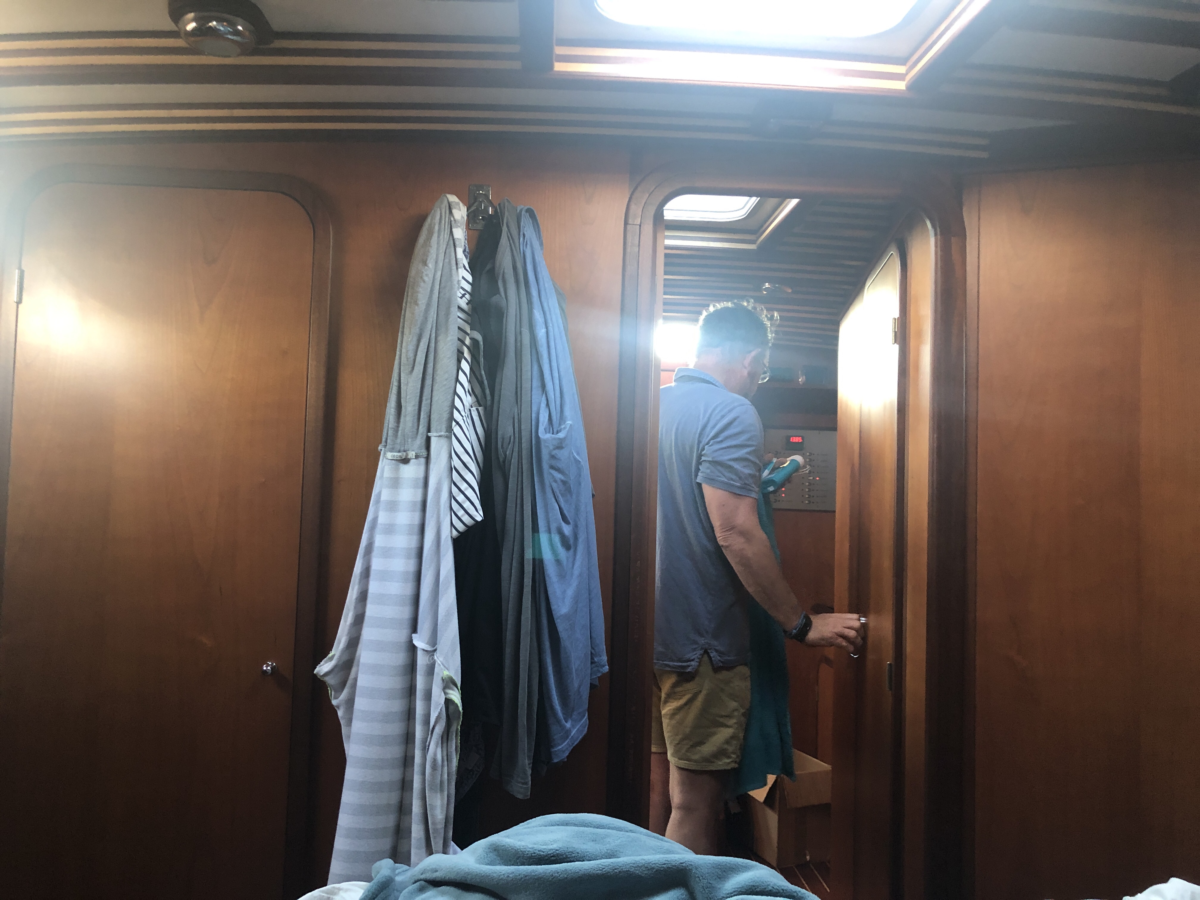 Und, jetzt ein bisschen Homestory, wie sieht’s an Bord aus? Edel verarbeitetes Holz, überall Stehhöhe, viel Stauraum, aber seht selbst …